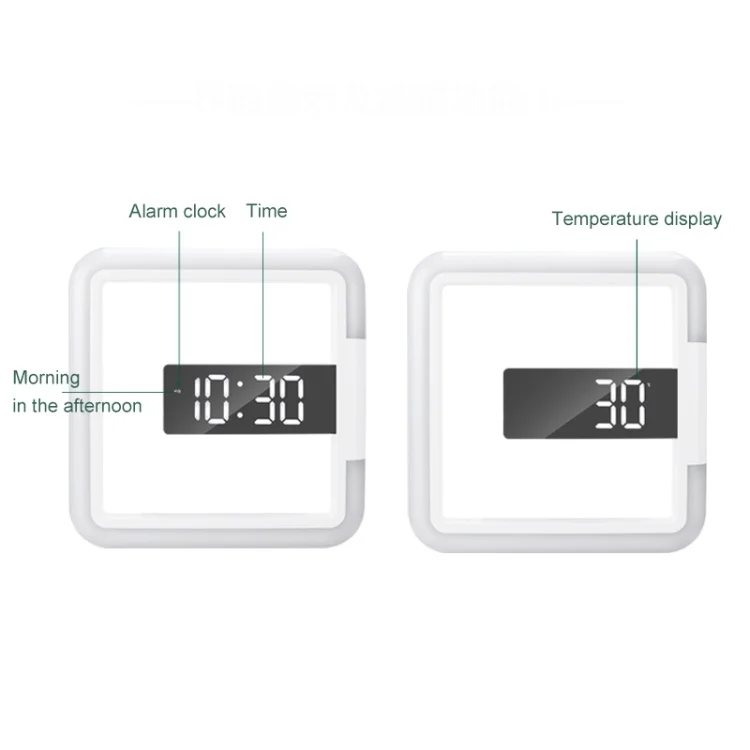 TS-S28-W Multifunctional Square RGB Thermometer Digital Alarm Clock LED Mirror Hollow Wall Clock