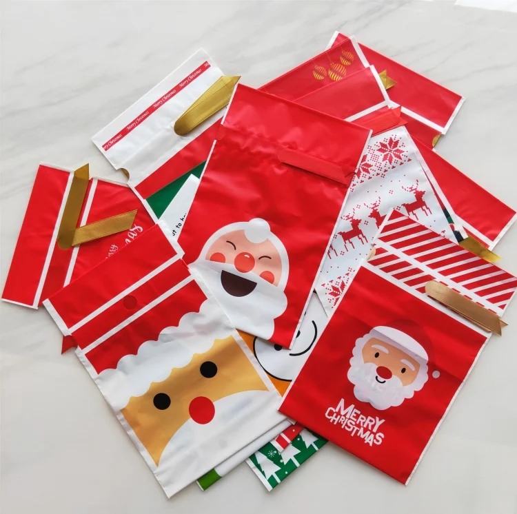 50pcs / Pack Christmas Gift Bag Candy Biscuit Drawstring Bundle Christmas Cookie Bag, Random Pattern Delivery