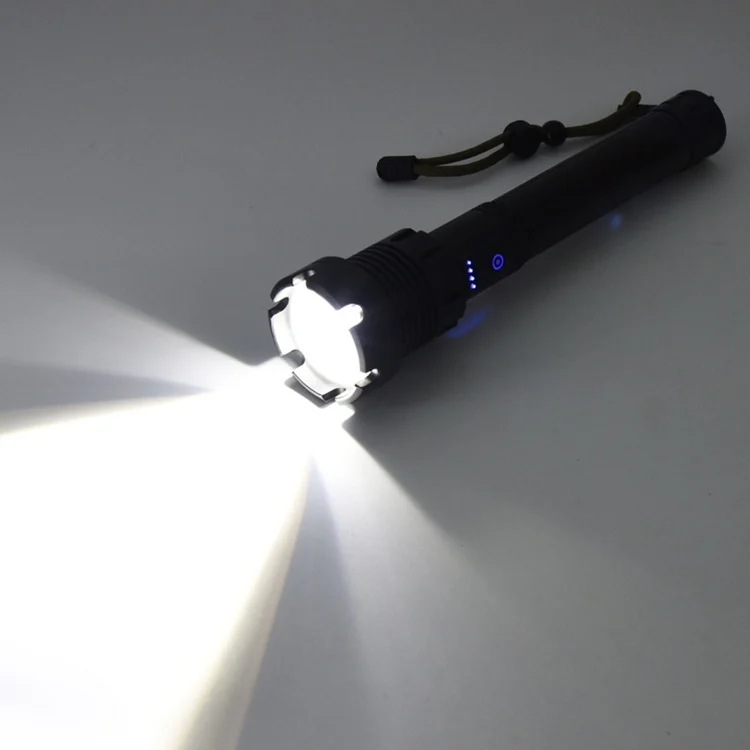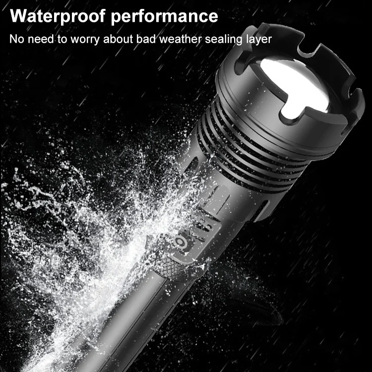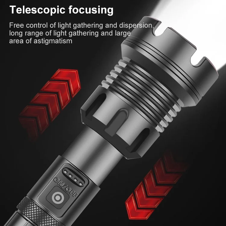 Long Style Micro USB Charging Outdoor Waterproof P90 + COB LED Flashlight, Support Power Display & Telescopic Focusing & 7-level Brightness Adjustment