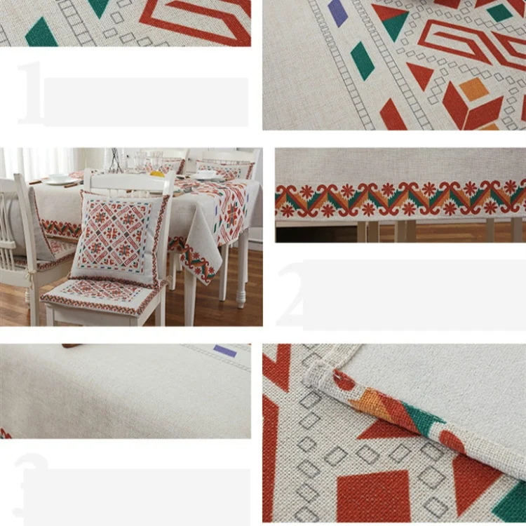 Retro Pattern Linen Table Cloth For Dinner Home Decor Dustproof Table Cover