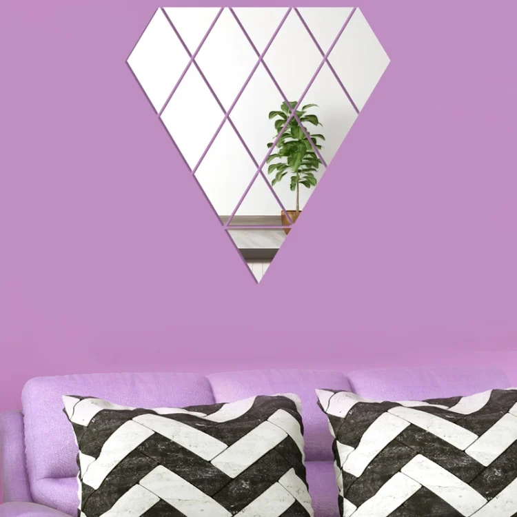 14pcs /Set Acrylic Diamond Mirror Stereo Wall Stickers Home Background Wall Decoration