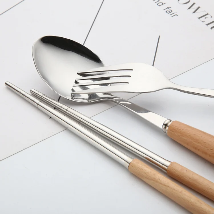 Three-piece set of wooden handle spoon fork chopsticks ,Two-piece wooden spoon chopsticks |