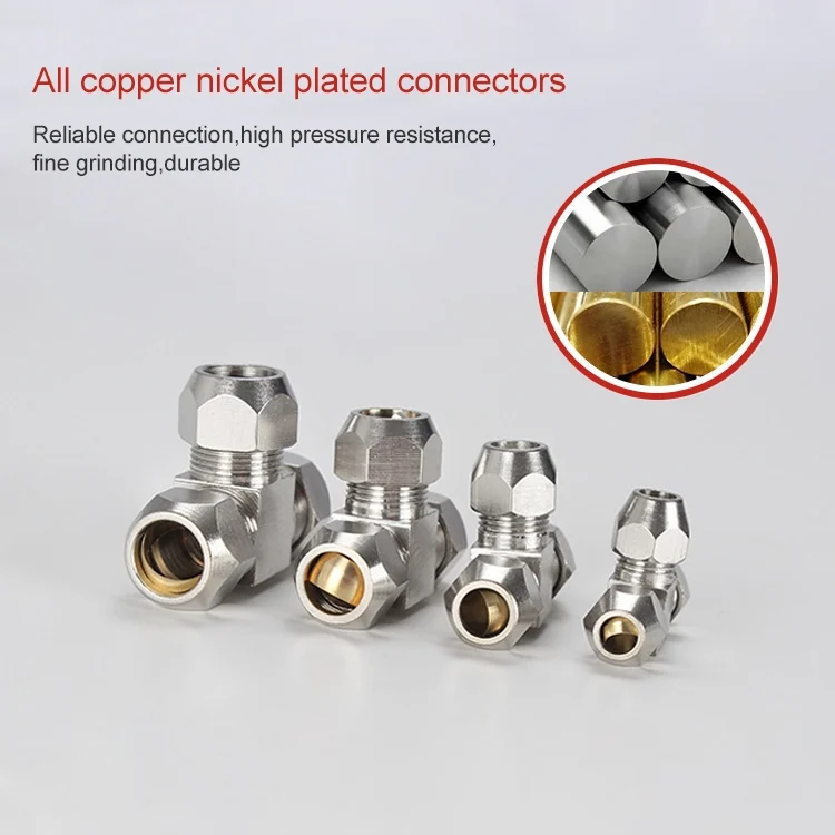 LAIZE Nickel Plated Copper T Type Tee Pneumatic Quick Fitting Copper Pipe Connector