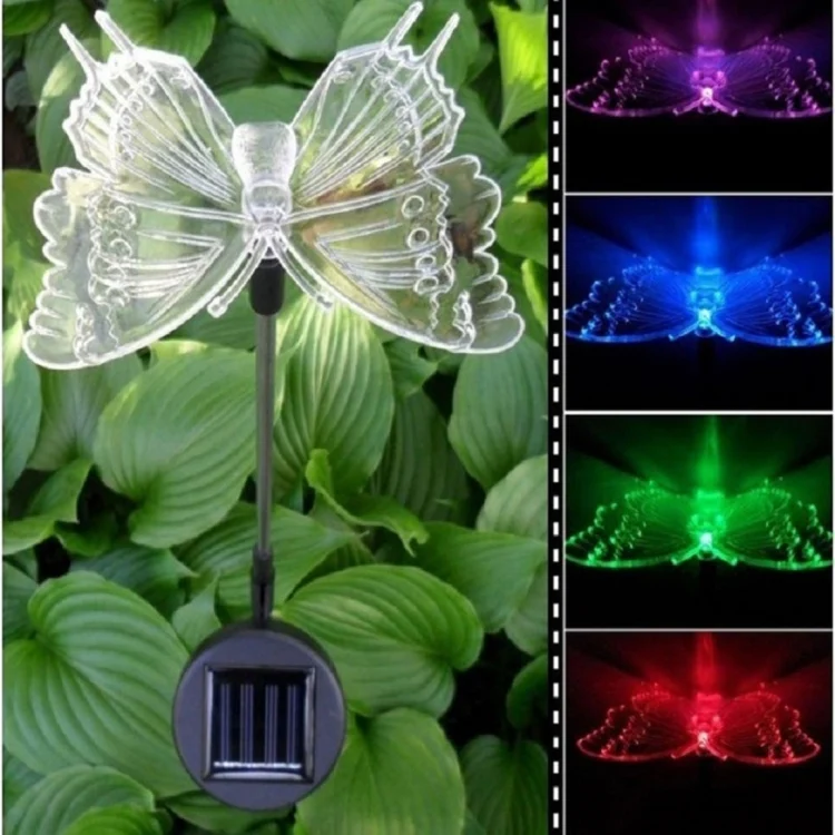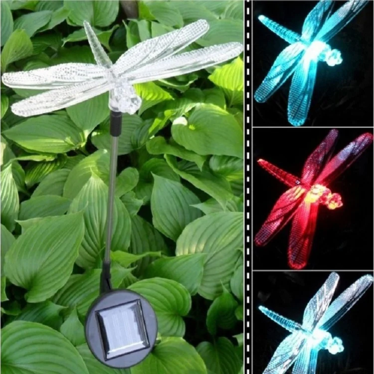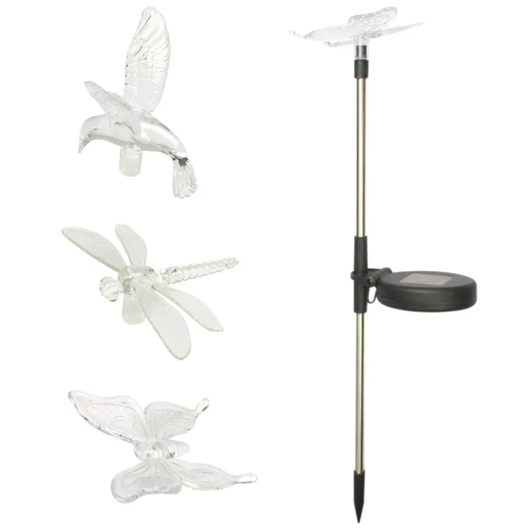 A106 3 PCS Colorful Light LED Solar Power Lamp, Bird Dragonfly Butterfly Pattern Outdoor Garden Landscape Path Decorative Light