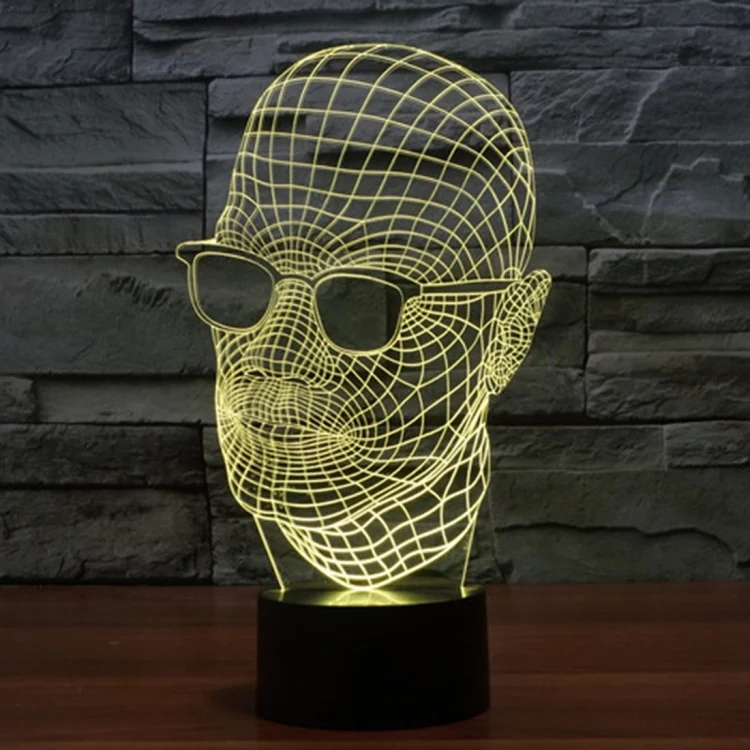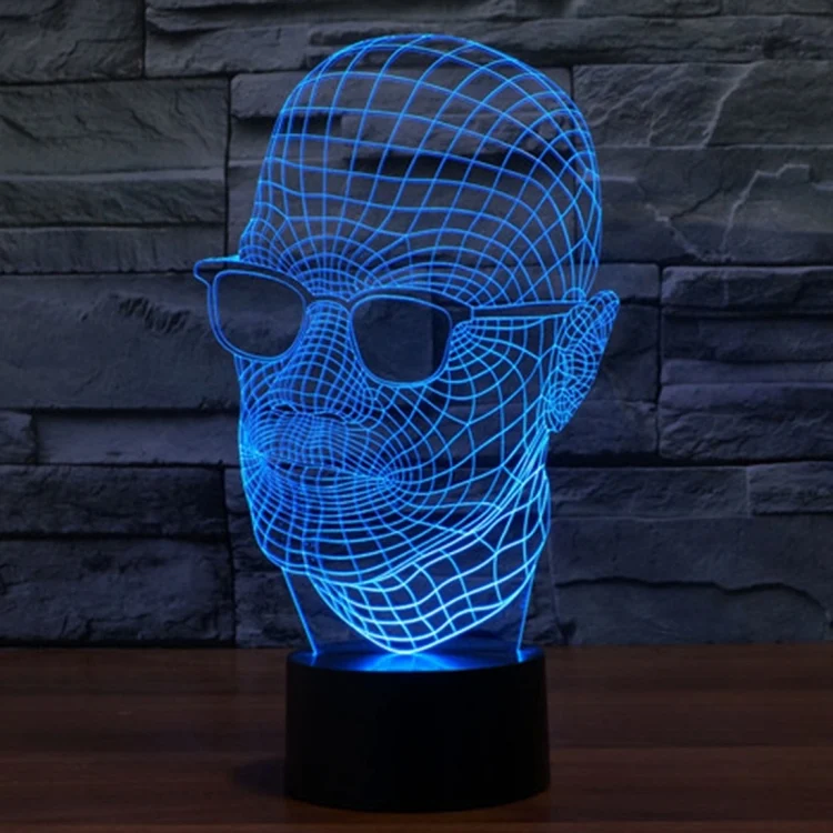 Man with Glasses Style 3D Touch Switch Control LED Light , 7 Color Discoloration Creative Visual Stereo Lamp Desk Lamp Night Light, Product Size: 23.6 x 14.0 x 8.7 cm