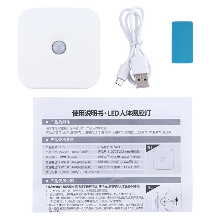 CL053 LED Square Human Body Sensor Light, Style: Battery Models
