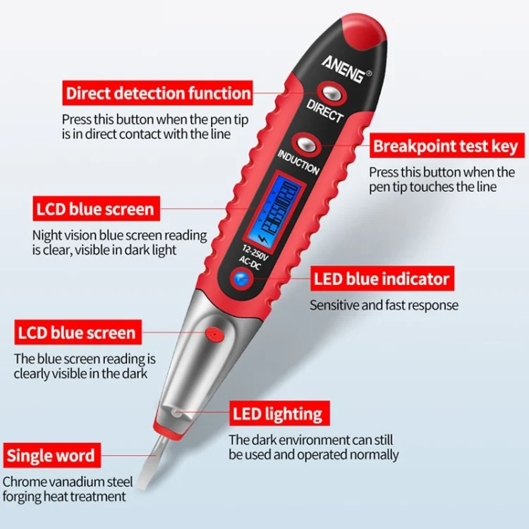 ANENG VD700 2pcs Sound and Light Alarm Non-contact Digital Display Sensor Multi-function Test Pen