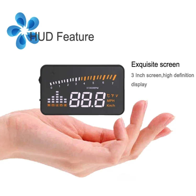X5 HUD 3 inch Universal Multi Car Head Up Display with OBDII EOBD System, Light Sensors, Rotation Speed, Rotation Speed Unit, Unit Mark, Voltage, Water Temperature, Alarm mark(Black)