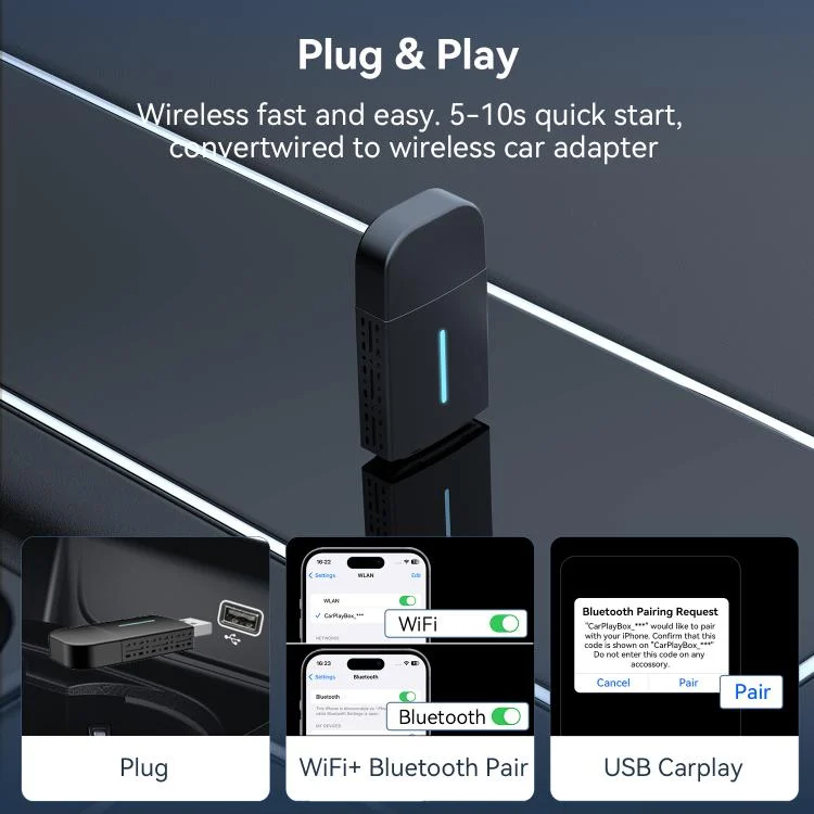 5. Wired Carplay/Android two-in-one to wireless, USB/Type-C dual interface compatible (the original car must have wired Carplay/wired Android auto function)