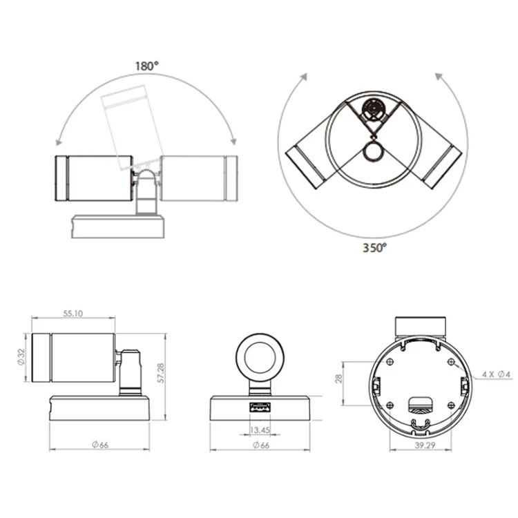 1. Free rotation, no dead angle illumination at 180 degrees.
