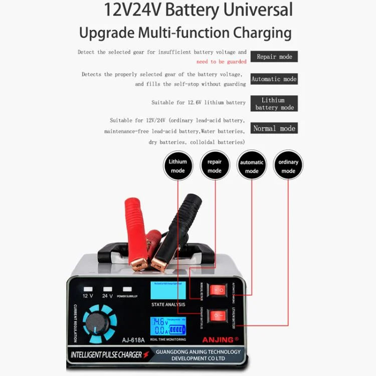 ANJING 12-24V Car Motorcycle Battery Charger Pure Copper Intelligent Pulse Repair
