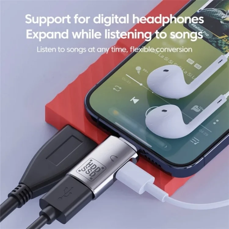 1. Versatile Connectivity: The JS-109 Type-C OTG Adapter allows you to connect digital headphones and USB drives effortlessly