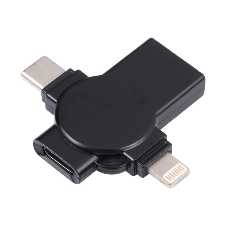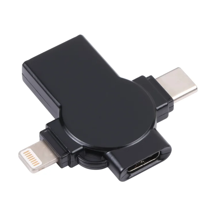 X09 4 in 1 USB to Dual 8 Pin+USB-C/Type-C Interface OTG Adapter