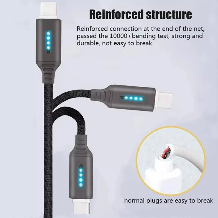 Type-c Intelligent automatic Power cut-off Cable for Zinc Alloy in Light-emitting Data Line