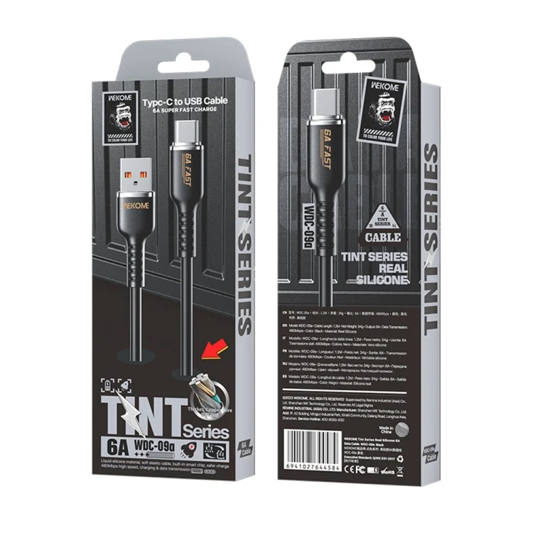 WK WDC-09a 6A USB to USB-C/Type-C Silicone Data Cable, Length: 1.2m, WDC-09a