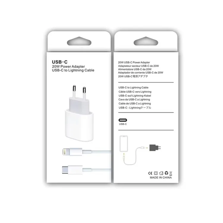 2 in 1 PD 20W Single USB-C / Type-C Port Travel Charger + 3A PD3.0 USB-C / Type-C to 8 Pin Fast Charge Data Cable Set, Cable Length: 2m, EU Plug