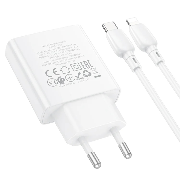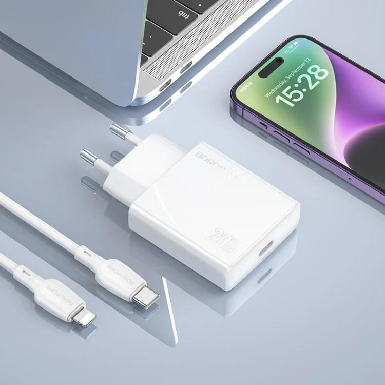 BOROFONE BN23 PD 20W Type-C Charger with 1m Type-C to 8 Pin Cable Set, EU Plug