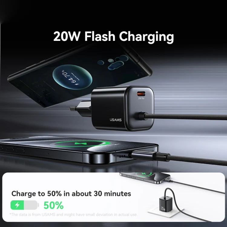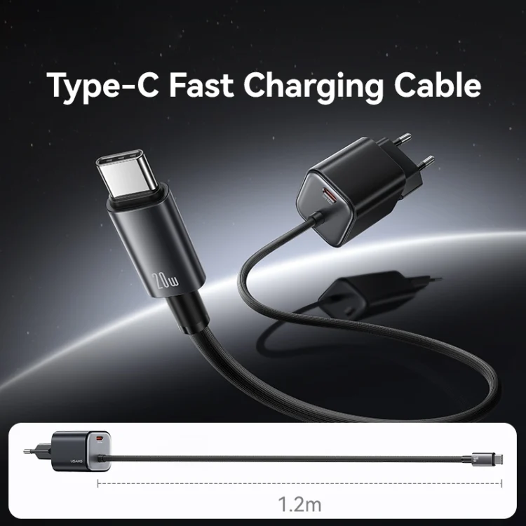 USAMS CC261 20W GaN Mini Type-C / USB-C Dual Port Fast Charger with Cable, CC261