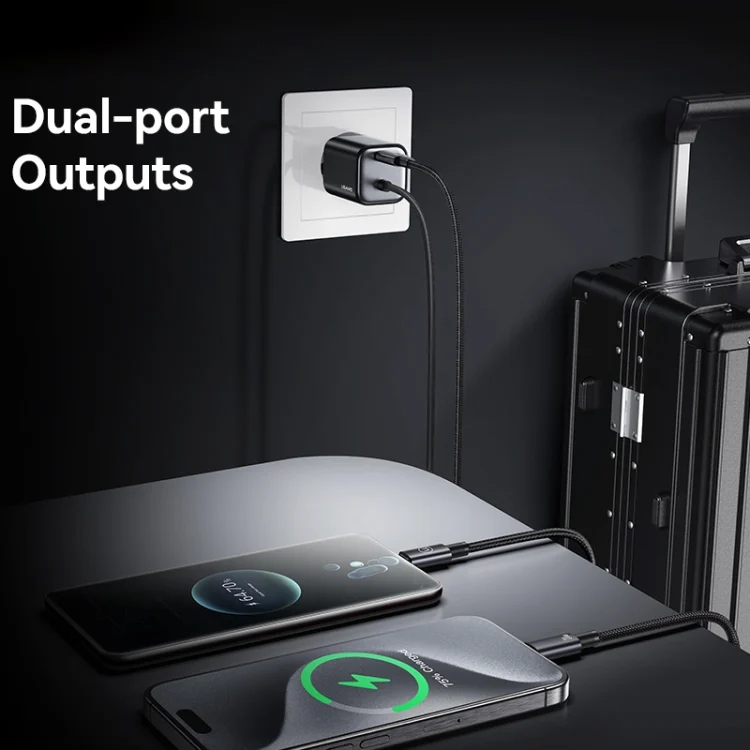 USAMS CC264 30W GaN Mini Type-C / USB-C Dual Port Fast Charger with Cable, CC264