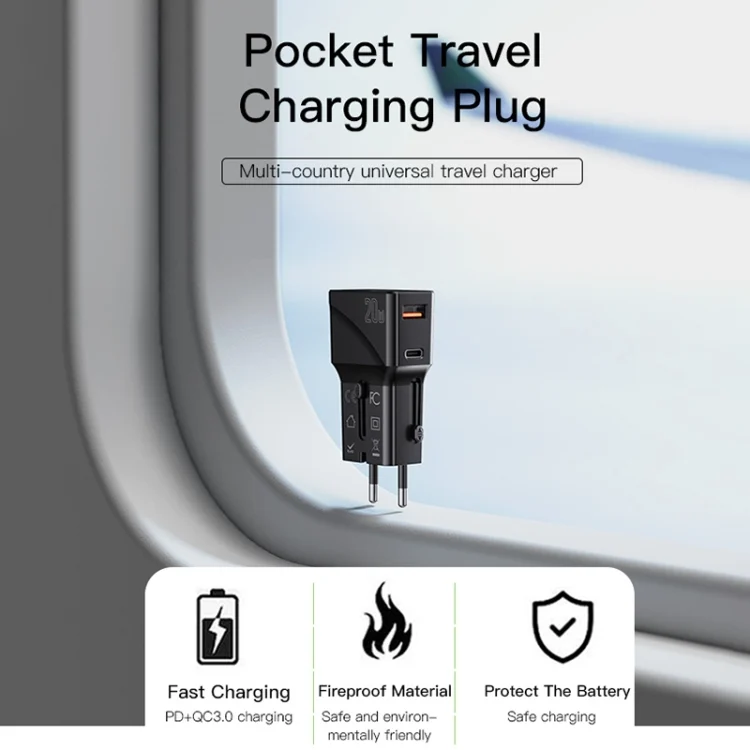 Yesido MC-17 QC3.0 + PD 20W Dual Port Global Universal Travel Charger, YC-17