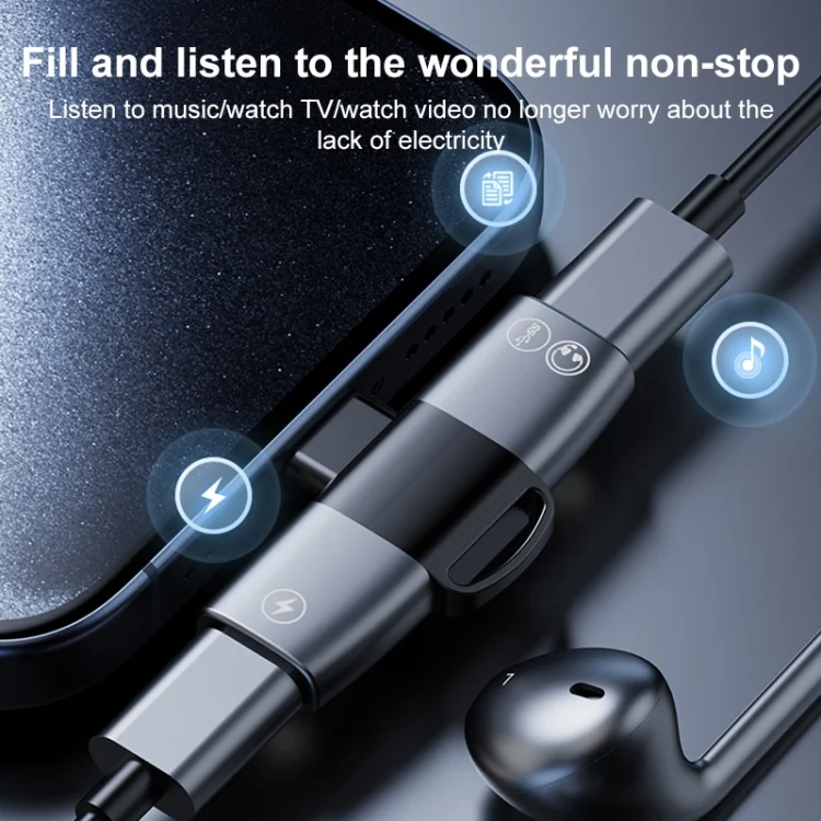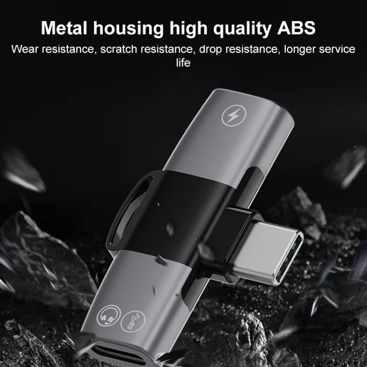 2 in 1 USB-C / Type-C to 3.5mm + USB-C / Type-C DAC Audio Phone Charging Adapter, Type-C to 3.5mm + Type-C