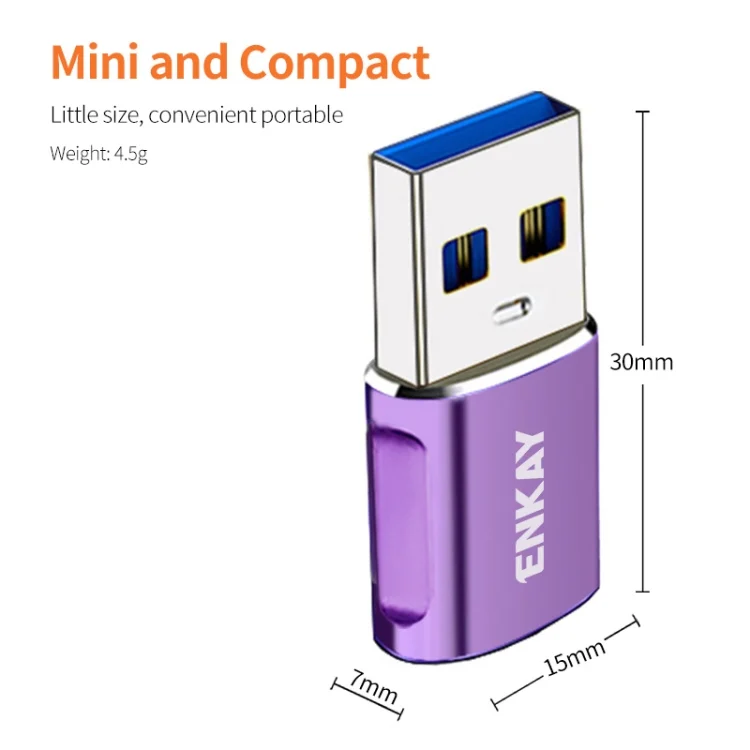 ENKAY ENK-AT119 Aluminium Alloy Male USB 3.0 to Female Type-C Data Adapter Converter Support Fast Charging, ENK-AT119