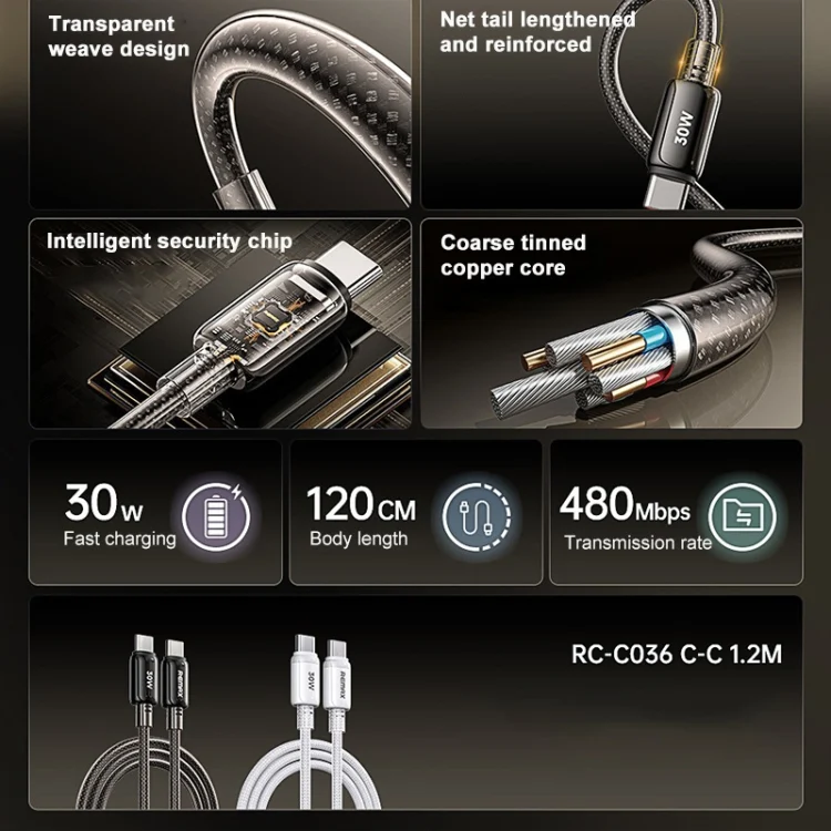 REMAX RC-162a Armor Series 3A USB to USB-C / Type-C Charging Cable, Cable Length: 1m, USB-C / Type-C