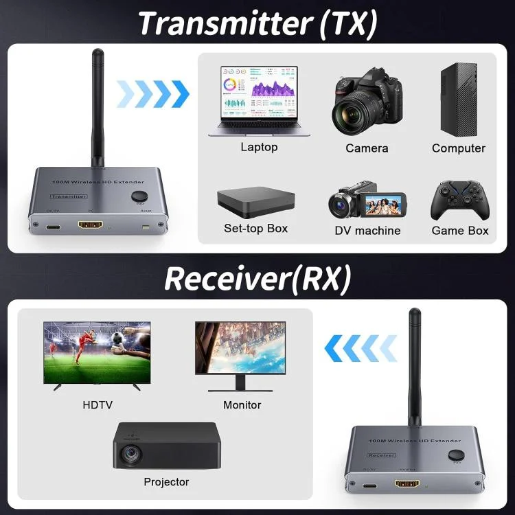 2 In 1 4K 30Hz Wireless HDMI Extender 100m Point To Point HD Video Transmitter, Transmitter+Receiver