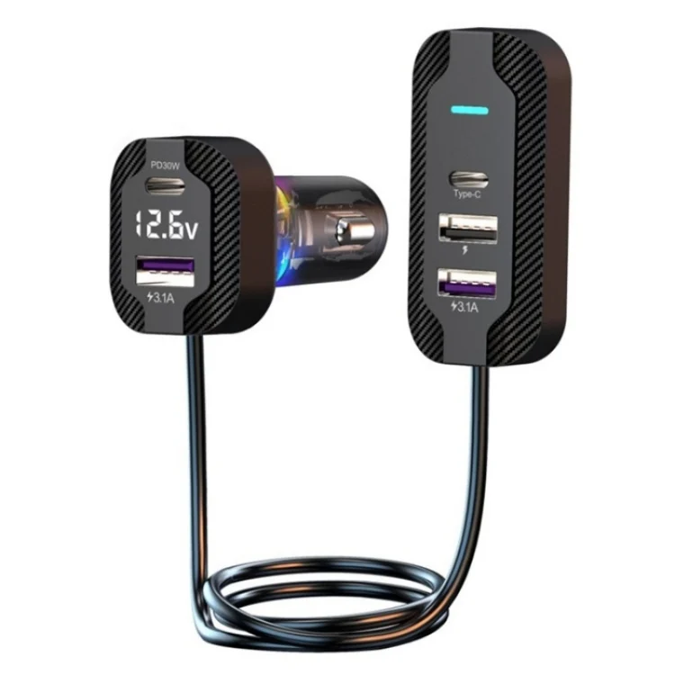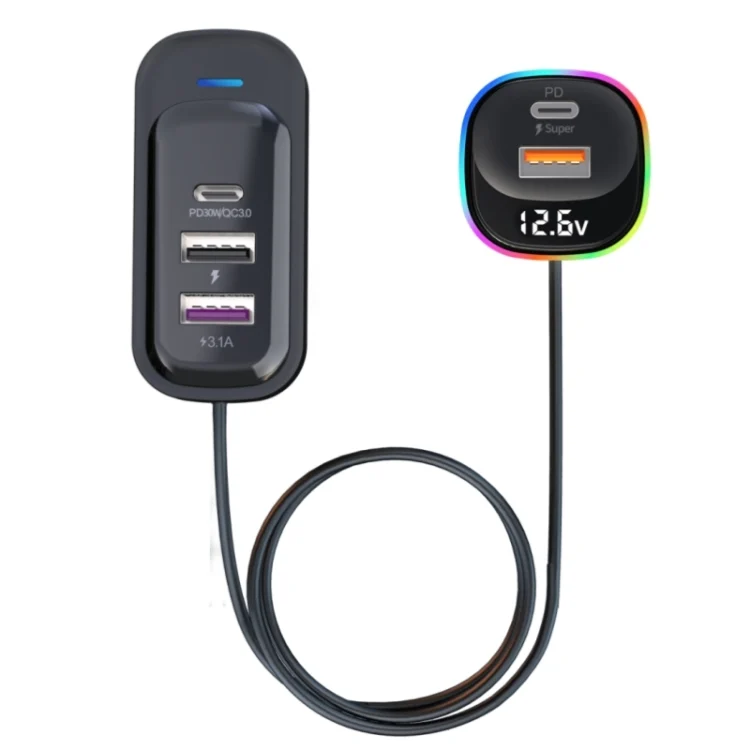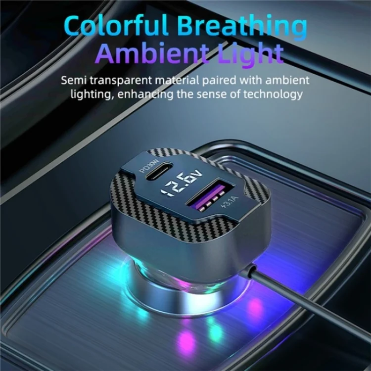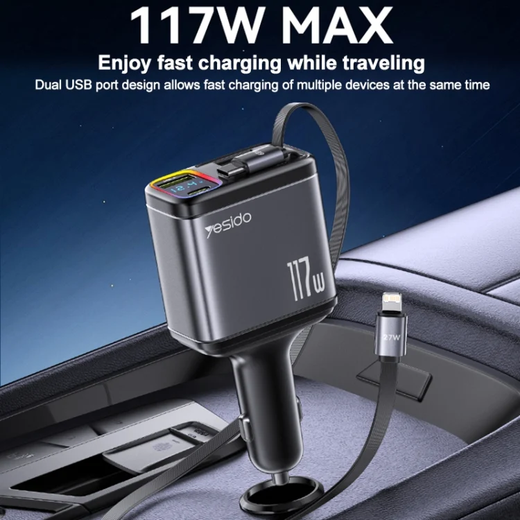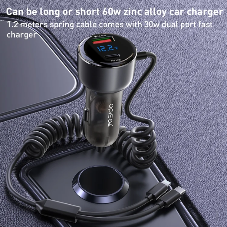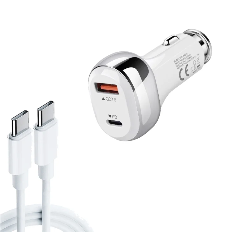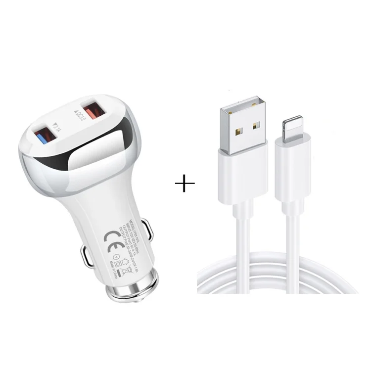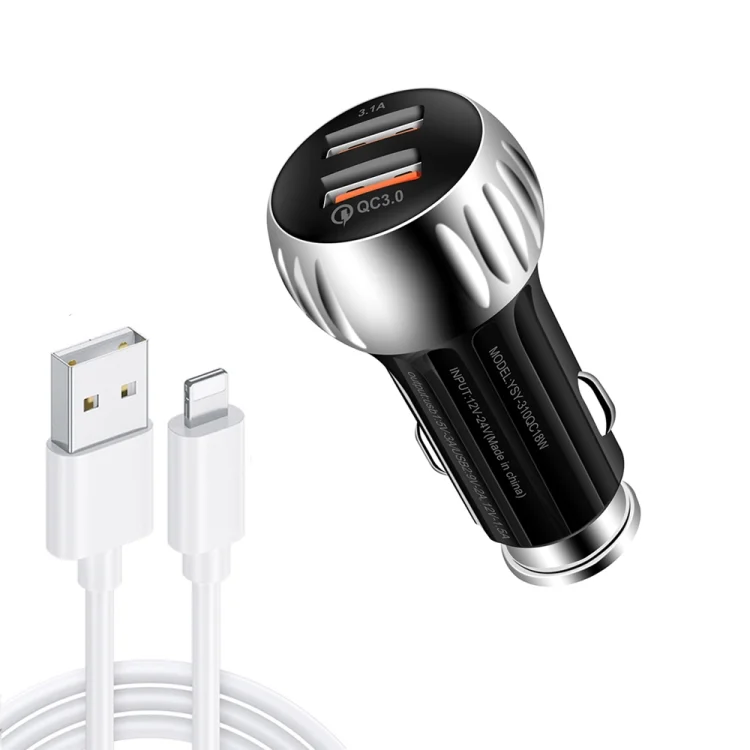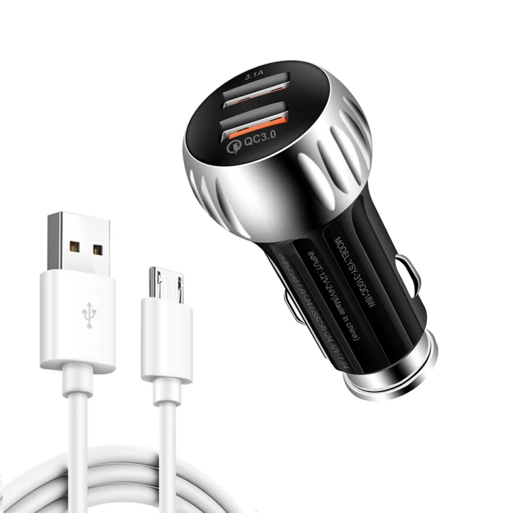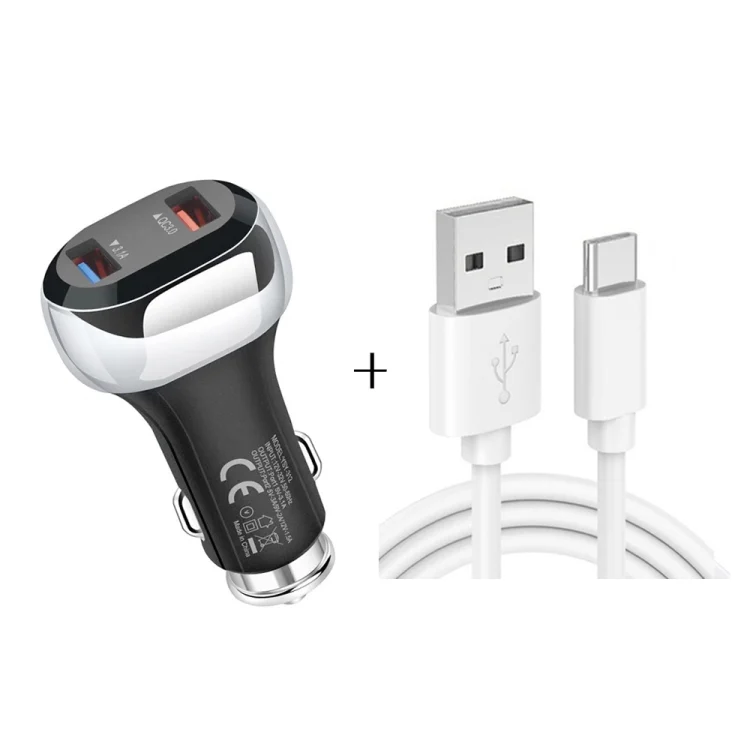 YSY-310QC18W QC3.0 Dual Port USB Car Charger + 3A USB to USB-C / Type-C Data Cable, Cable Length: 1m