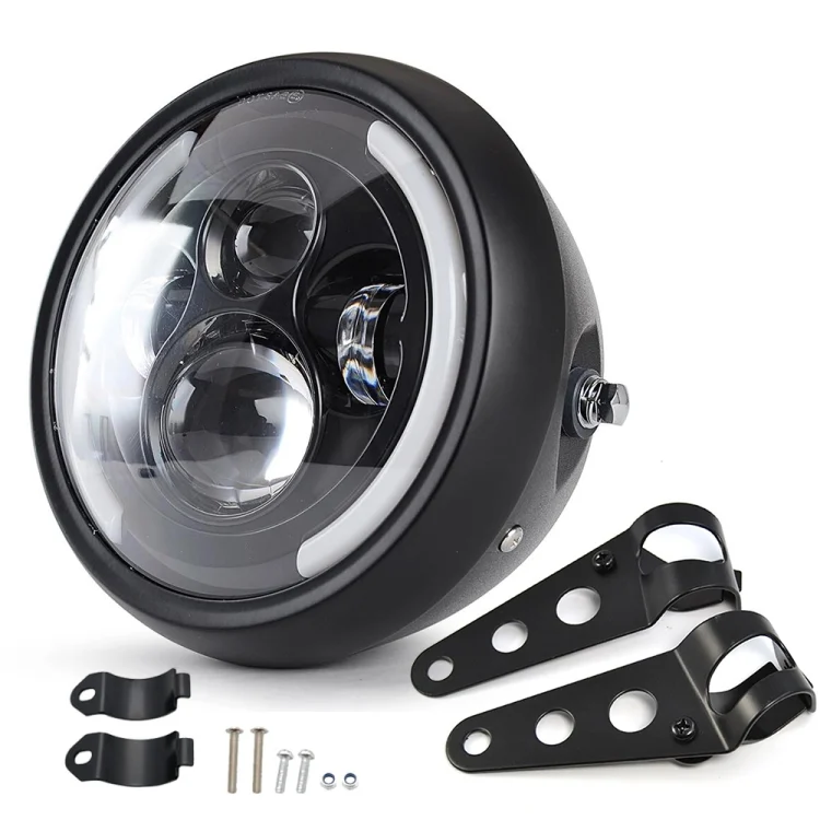 5.75 inch Motorcycle Black Shell Retro Lamp LED Headlight Modification Accessories for CG125 / GN125