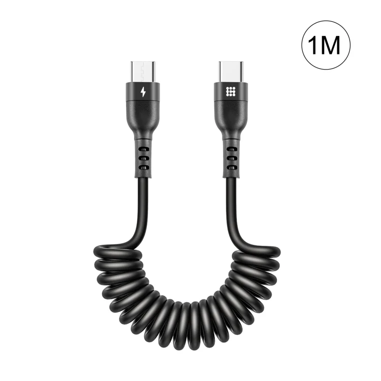 ROCK RCB0877 PD 60W USB-C / Type-C to USB-C / Type-C Spring Coil Fast Charge Data Cable, Length:1.5m