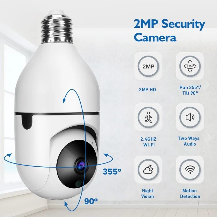 ESCAM 2.0MP 1080P Light Bulb WiFi Camera, Support IR Night Vision / Motion Detection / Two-way Voice