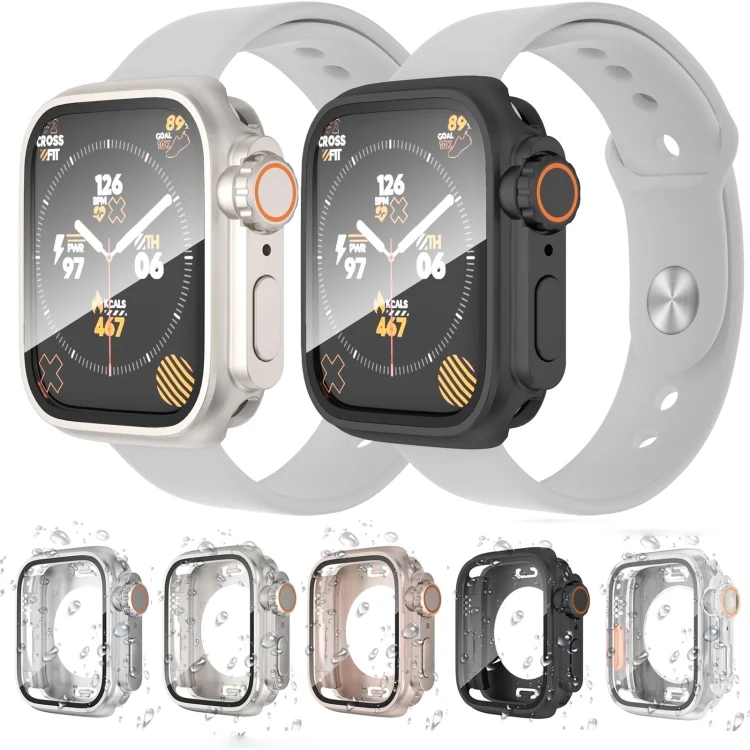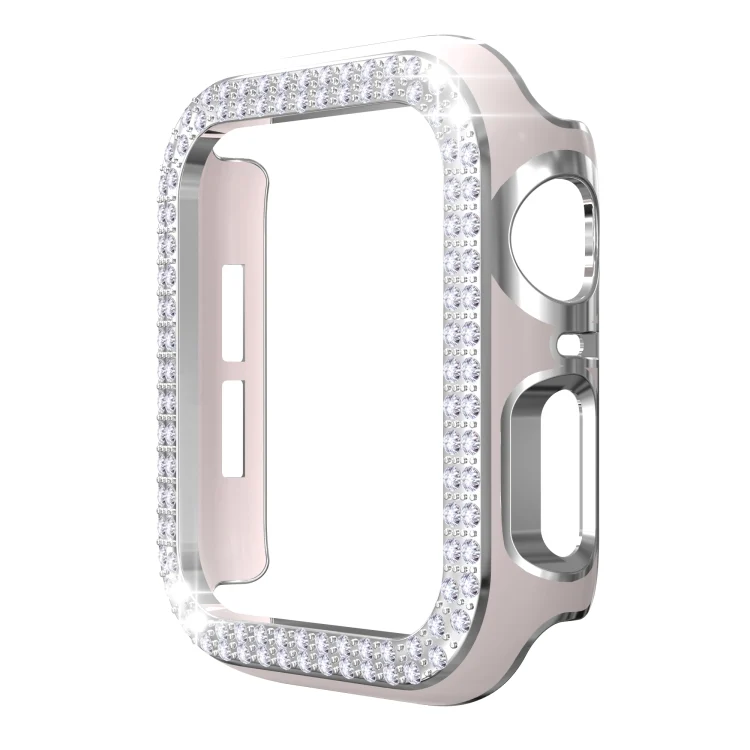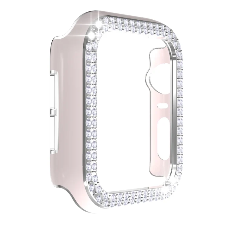 Electroplating PC Single Row Diamond Protective Case with Tempered Glass Film For Apple Watch Series