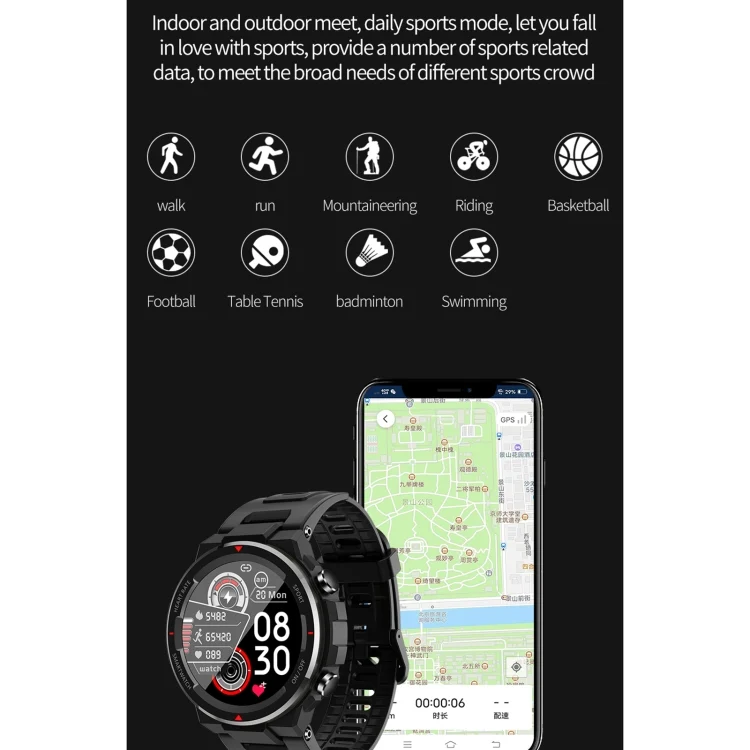 PR1-2 1.24 inch IP68 Waterproof Sport Smart Watch, Support Bluetooth / Sleep Monitor / Call Reminder
