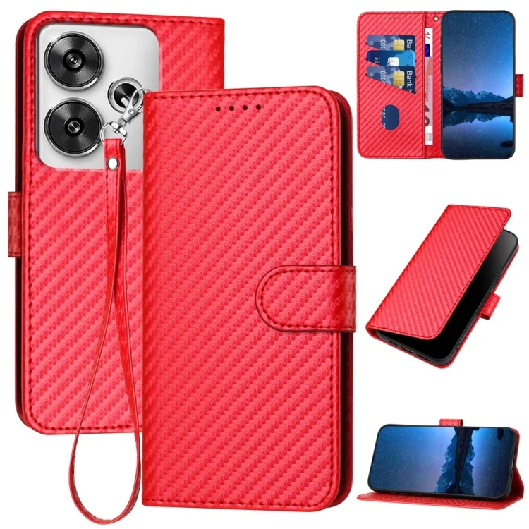 YX0070 Carbon Fiber Buckle Leather Phone Case with Lanyard, For Redmi Note 12 Turbo / Xiaomi Poco F5