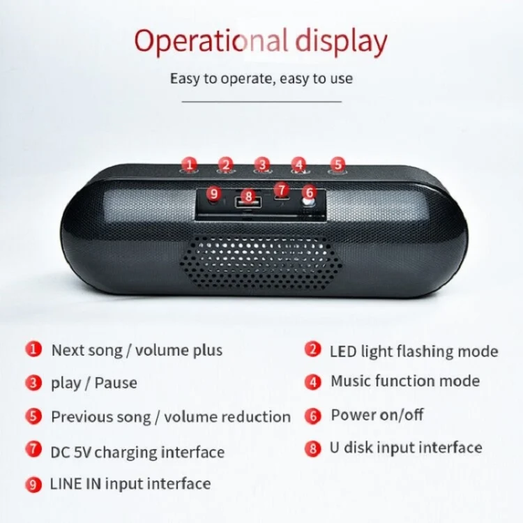 T&G TG287 LED Flashing Light Bluetooth Speaker Portable Wireless Stereo Bass Subwoofer FM / TF / USB