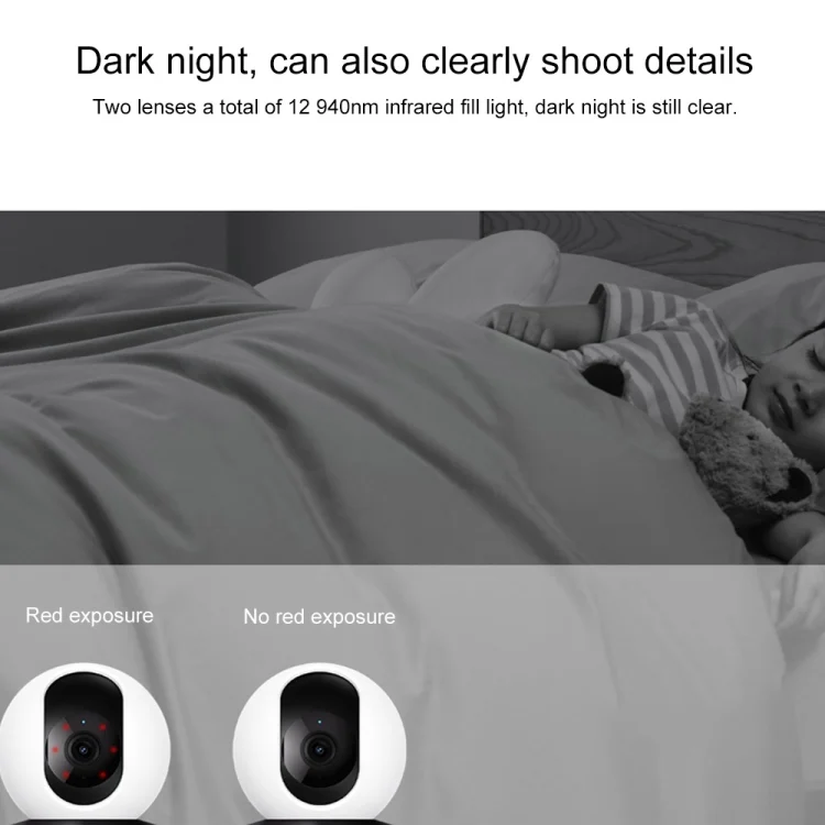 7. Enhanced night vision function: 12pcs built-in 940nm infrared fill lights are used to present clear images even in a dark environment.