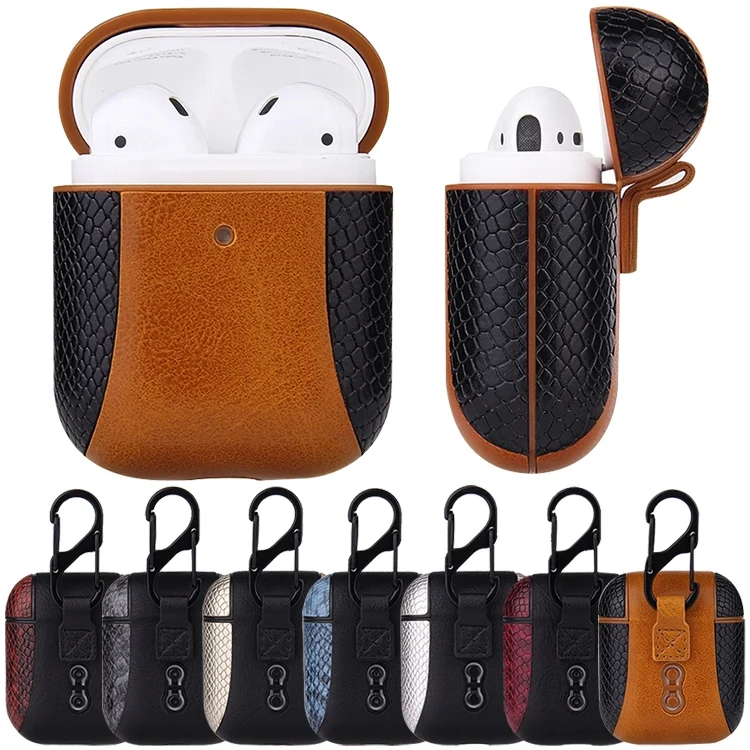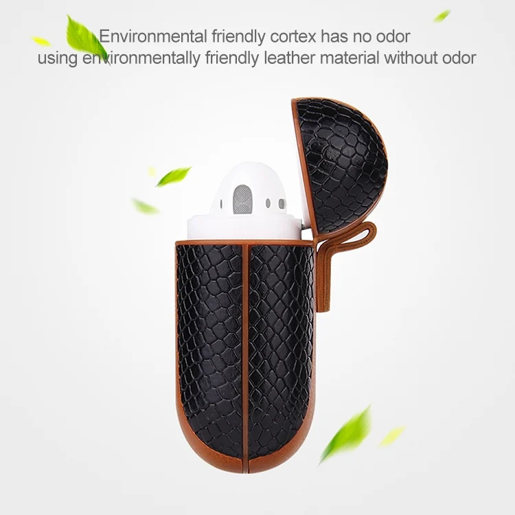 Colour-matching Flip-over Leather Earphones Shockproof Protective Case for Apple AirPods 1 / 2
