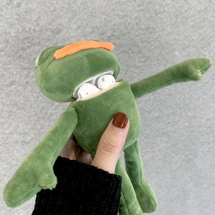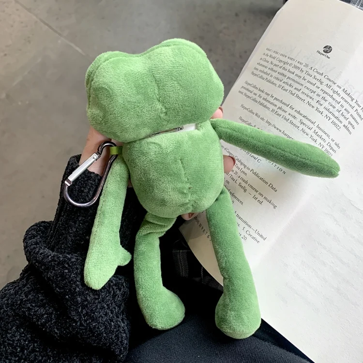 For AirPods 1 / 2 Plush Sad Frog Shape Earphone Protective Case with Hook