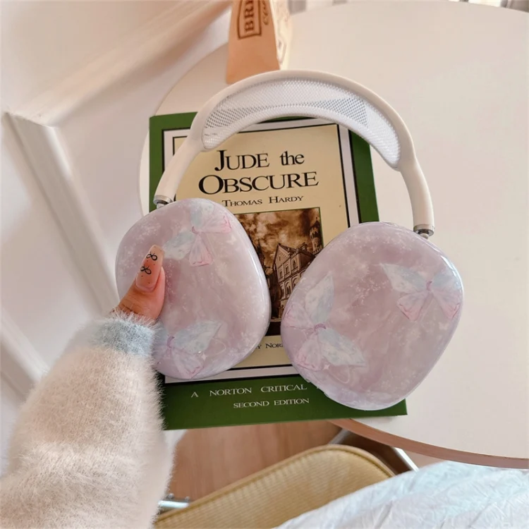 For AirPods Max 1Pair Marble Textured Butterfly Pattern Headphone Silicone Case, Butterfly