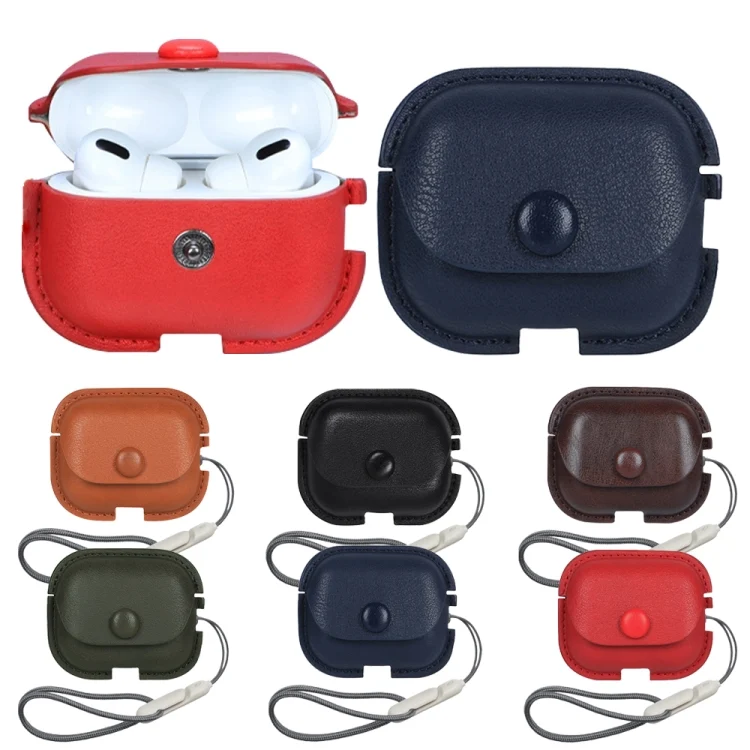 Litchi Texture PU Leather Earphone Protective Case with Lanyard, For AirPods Pro 2 with Lanyard