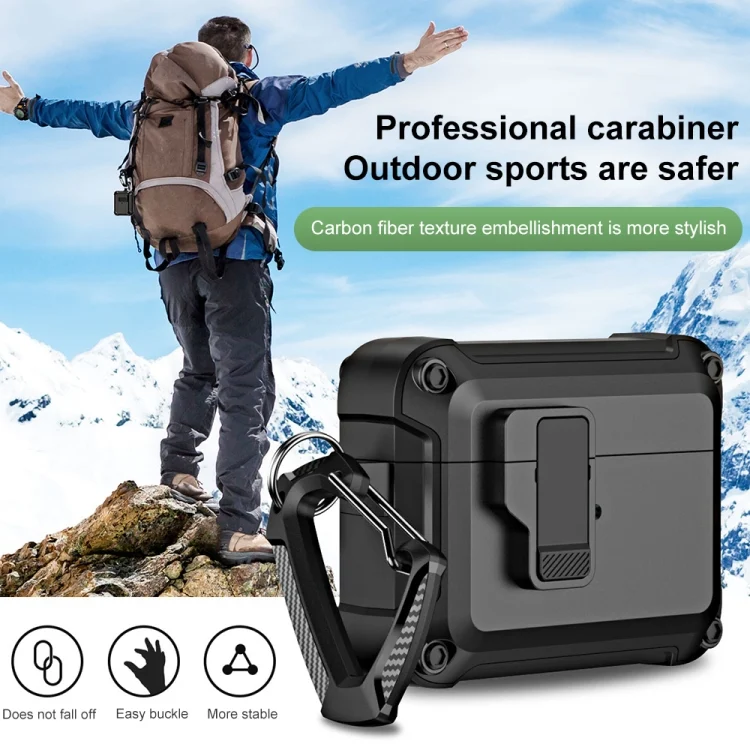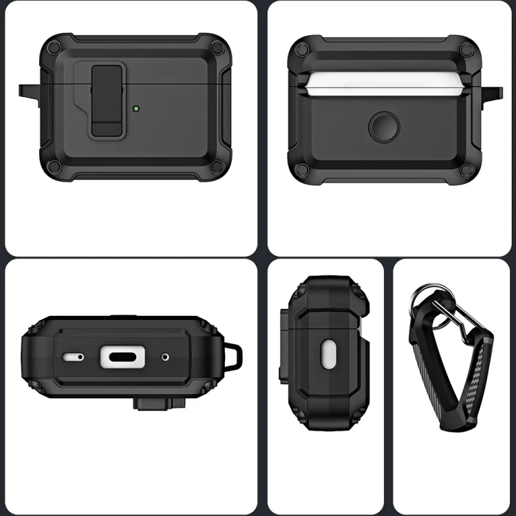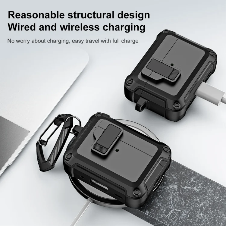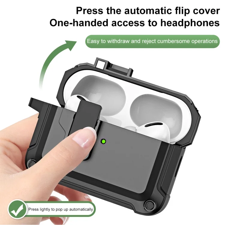 TPU + PC Wireless Bluetooth Earphone Protective Case with Switch Lock & Hook, For AirPods Pro 2