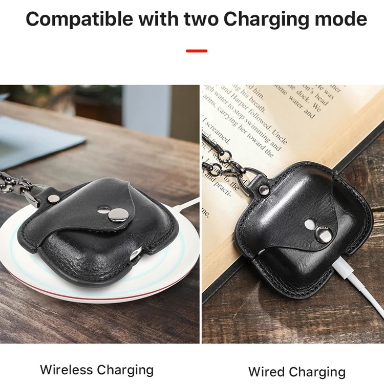 CONTACTS FAMILY CF1122A AirPods Pro Leather Protective Case with Necklace for AirPods Pro, Black, Red, Blue, Green