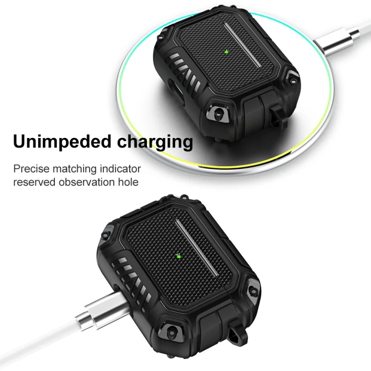 Diamond Shield Mecha TPU + PC Earphone Protective Case with Hook for AirPods Pro, For AirPods Pro