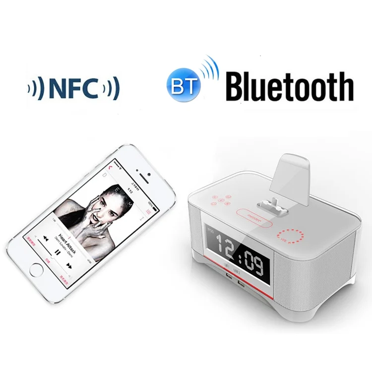 A8 Charging Base Audio NFC Bluetooth Speaker Alarm Clock, US Plug, EU Plug, UK Plug