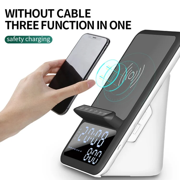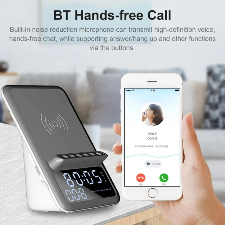 AEC BT512 Multifunctional Bluetooth Speaker 10W Wireless Charger LED Desktop Electronic Alarm Clock