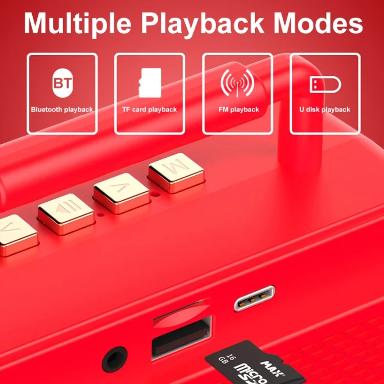 BT21 Retro USB Flash Drive FM Radio Wireless Bluetooth Speaker, Rosewood, Pink, Black, Red