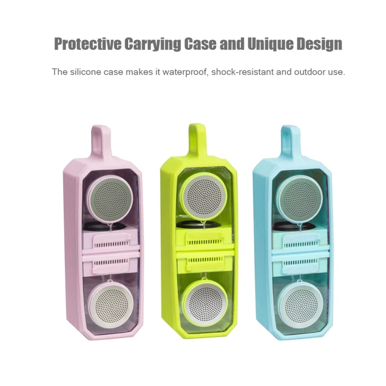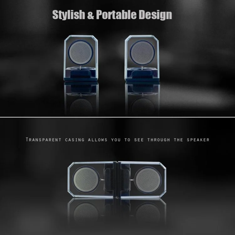 1.Stylish & Portable Design: Transparent casing allows you to see through the speaker.