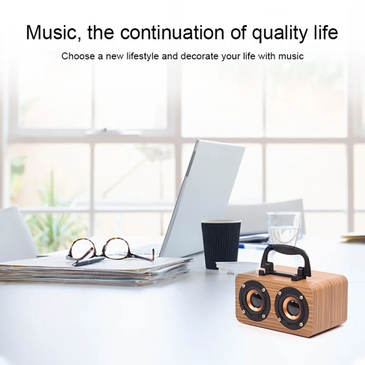 FT-4002 Wooden Wireless Bluetooth Portable Retro Subwoofer Speakers, Support TF card & USB MP3 Playback, Black Wood Grain, Yellow Wood Grain, Red Wood Grain