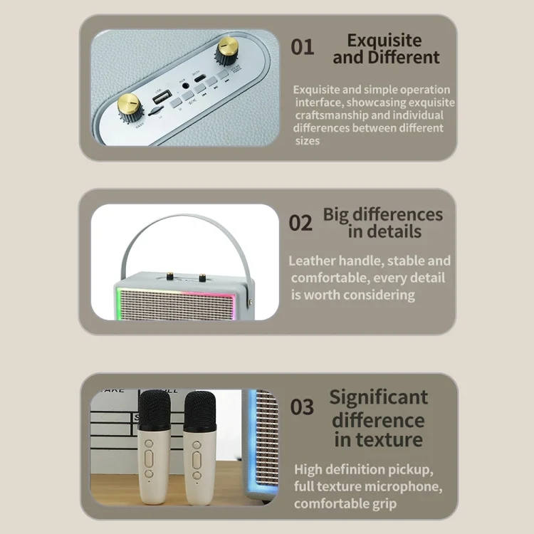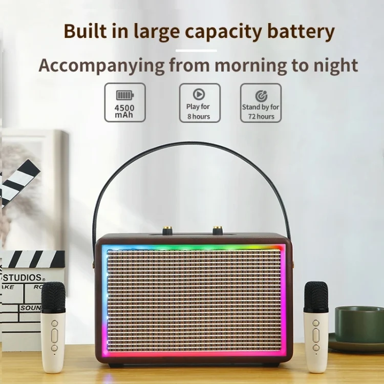 Leather Colorful Light Effect Karaoke Audio Retro Outdoor Bluetooth Speaker, Dual-microphone, Single Speaker